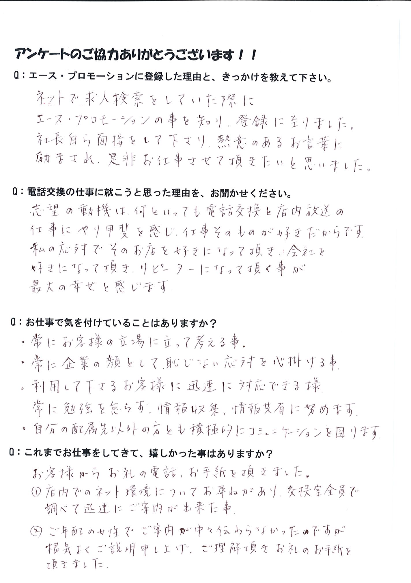電話交換のお仕事希望のスタッフさんにアンケートにご協力いただきました!