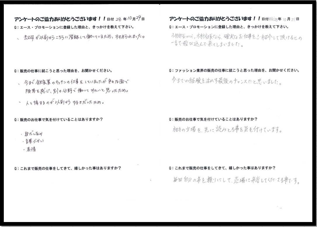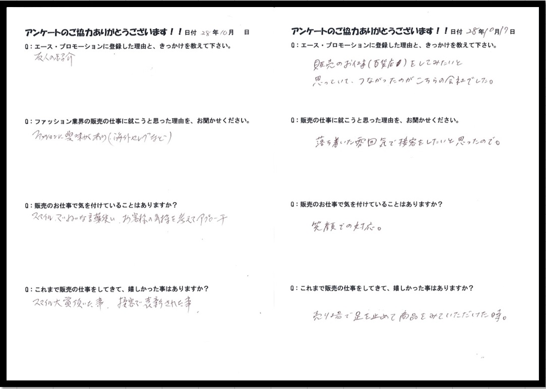 『友人の紹介で登録しました!』販売員さんにアンケートにご協力いただきました☆