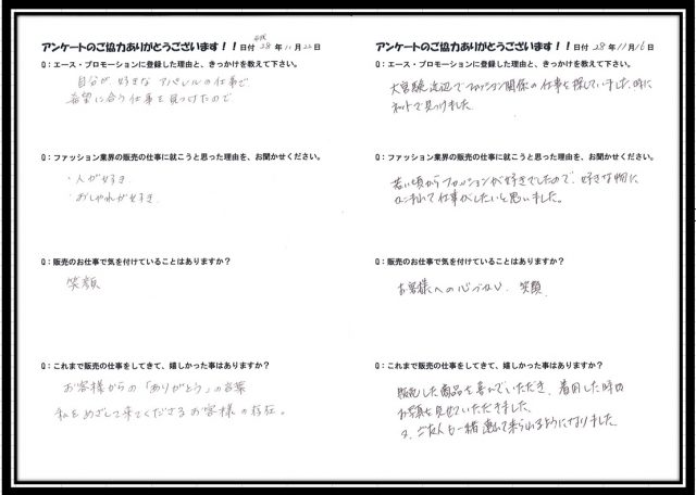 『自分の好きなアパレルの仕事を見つけました!』販売員さんにアンケートにご協力いただきました☆