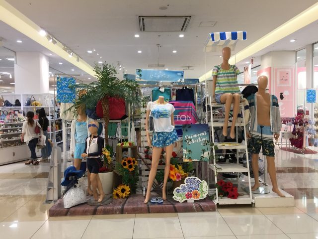 水着売り場は3Fエスカレーター前の一等地です。お客様にも目につきやすいとても良い場所ですね。