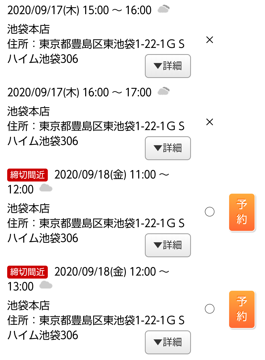 「✖」のところはすでに定員となっており選択することが出来ません💦💦