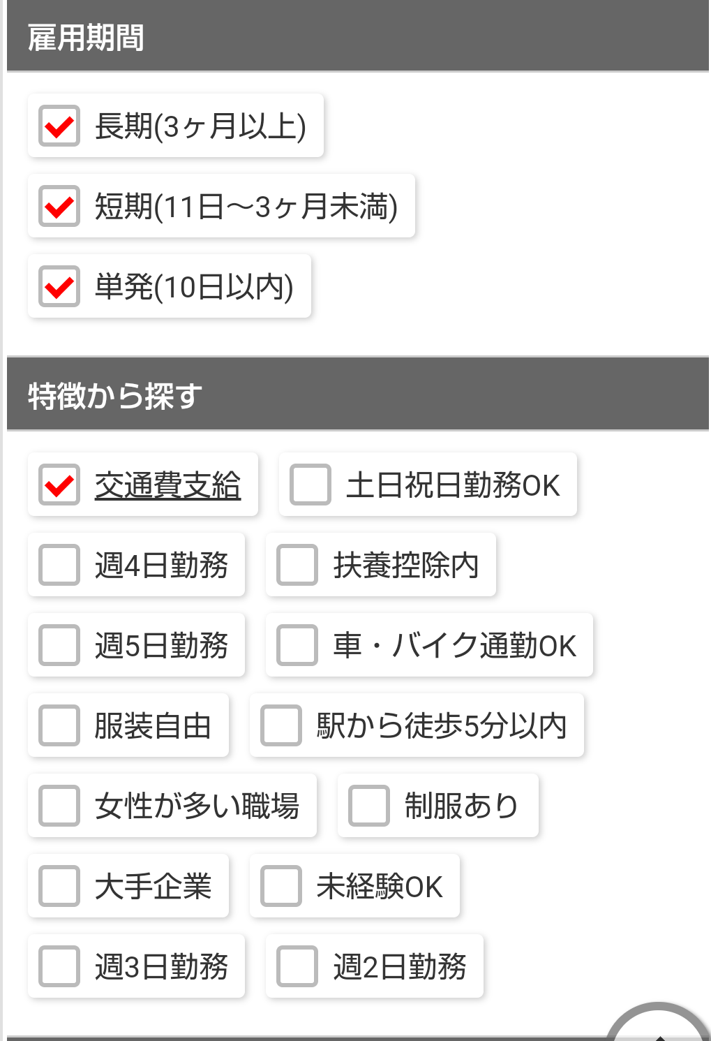 その後は、「カテゴリ」「雇用期間」「特徴」も選択できます😊✨